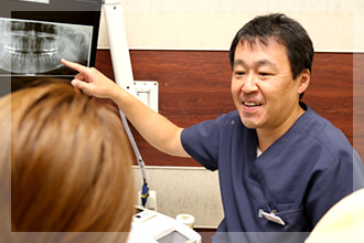 二つ目は、患者さんとのコミュニケーションを大切にしています。安心の歯科医療には、患者さんご自身の理解と納得が欠かせません。なので、まず患者様に診断結果や、これから行う処置内容やについて、画像やアニメーションを用いてわかりやすくご説明しています。必ず患者様にご理解・ご納得してもらったうえで治療を開始することを心がけています。